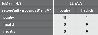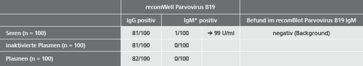 *Austestungen im recomWell Parvovirus B19 IgM mit RF-Absorption (RF-Absorbens: Fa. DADE-Behring)