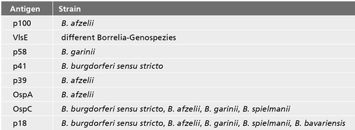- Immunodominant antigens of the four genospecies: B. burgdorferi sensu stricto, B. garinii, B. afzelii, B. spielmanii and B. bavariensis