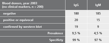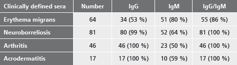 The bacterium Borrelia burgdorferi, a spirochete, is responsible for Lyme borreliosis. This disease is transmitted to humans by ticks. Lyme borreliosis is a multisystemic disease with diverse manifestations which make clinical diagnosis difficult. Direct detection of the pathogen is also problematic. Therefore, in routine diagnosis, the serological detection of Borrelia-specific antibodies represents the easiest and safest method for the detection of a Borrelia infection.