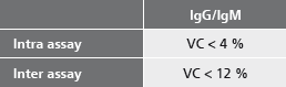 - Identical procedure for IgG and IgM determination