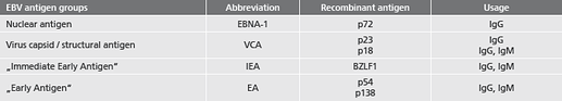 - safe detection of long past infections due to the very high specificity of the diagnostic EBV key antigen EBNA-1
