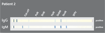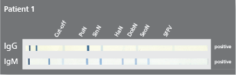 Strip-Immunoassay with antigens produced by recombinant techniques for the detection of IgG and IgM antibodies against Hantavirus (serotypes Puumala (PuN), Sin Nombre (SinN), Hantaan (HaN), Dobrava (DobN) and Seoul (SeoN)) as well as Sandfly Fever Virus (SFFV) serotypes Toscana and Sicilian.