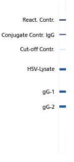 The recomLine HSV-1 & HSV-2 IgG uses purified, subtype specific recombinant gG1 (HSV-1) and gG2 (HSV-2) antigens and therefore assures the correct differentiation between an HSV-1 and HSV-2 infection.