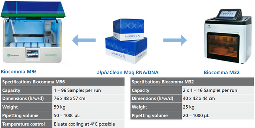 alphaClean Mag RNA/DNA Kits with Biocomma M32 and M96 extraction systems