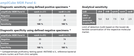 The ampliCube MDR Panel tests are a highly sensitive and flexible real-time PCR test system for the detection of transmittable resistance genes, either from bacterial culture or directly from swabs.