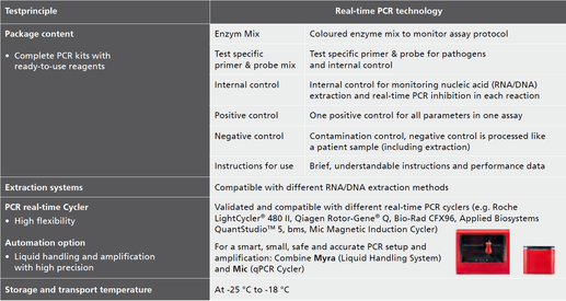 The novel Coronavirus SARS-CoV-2 belongs to the SARS-Coronaviruses (SARS-CoV) and is responsible for the disease COVID-19, a severe acute respiratory syndrome. With the beginning of the cold season the SARS-CoV-2 pandemic flares up in many countries again. Since other respiratory pathogens such as influenza A/B typically also spread strongly during this time of the year, rapid diagnosis and differentiation is all the more important.