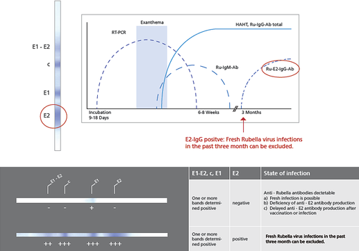 - Clarification of unclear Rubella IgM findings and the diagnostically critical determination of the point of infection are possible