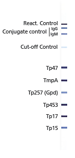 - Additional safety due to new antigens Tp257 (Gpd) and Tp453 with high specificity for Treponema pallidum