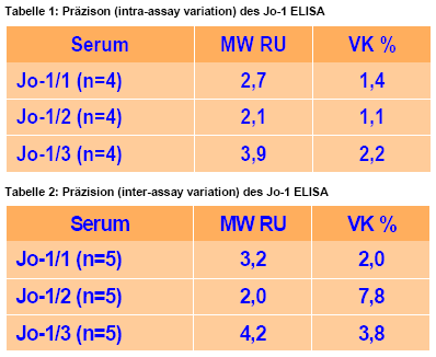 Der Jo-1 ELISA ist zur semi-quantitativen Detektion von anti-Jo-1 Antikörpern bestimmt und trägt somit zur Diagnostik von Myositiden und verwandten syste-mischen Autoimmunerkrankungen bei.