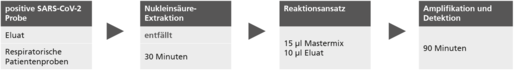 - Eluate positiver SARS-CoV-2 Proben können ohne Neuextraktion verwendet werden