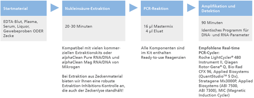 - Anwendbar für humanes Startmaterial wie auch RNA/DNA aus der Zecke